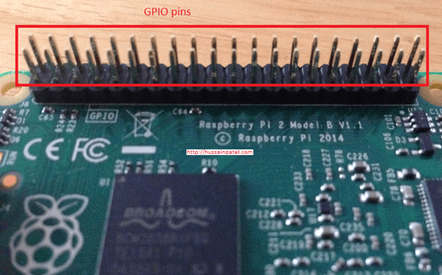 The Pi has GPIO pins that stick out from the top of the board. These pins act as an interface between Raspberry Pi and the physical world. These pins are used to communicate (both input / output) with other circuitry such as sensors, actuators, extension boards and custom circuits.