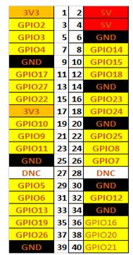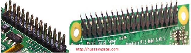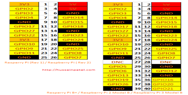 The GPIO pins, shown below vary, based on the Raspberry Pi model. The previous models have 26 pins and the latest models - Raspberry Pi 2 Model B and Raspberry Pi 3 Model B both have 40 Pins.