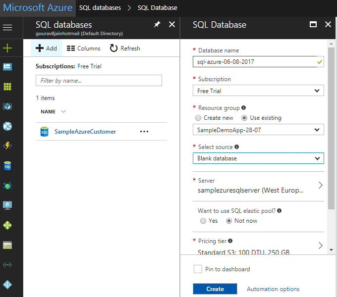 Read the following article to create an Azure account and for some basic information about Azure to get started. Implementation – Create SQL DB on Azure Platform