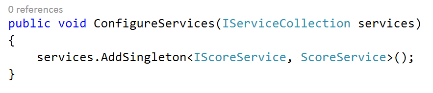 Now, whenever an object of type IServiceCollection will be demanded, the same object (as it has singleton scope) will be handed over. We'll see how this injection works in next post.