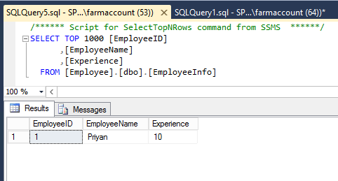 We will be using EmployeeInfo table, which is present in the database Employee to perform the implementation walk through.