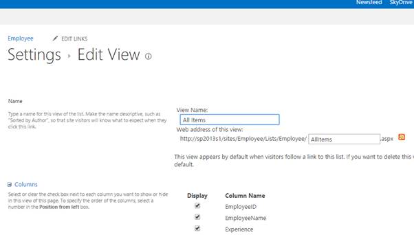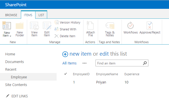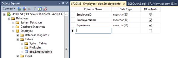 SharePoint List is named Employee, which has the same columns as SQL Server table.