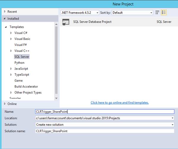 As the first step, we will create SQL CLR Trigger, using SQL Server database project template.