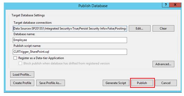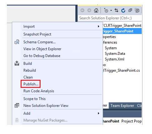 Click Publish to deploy CLR Trigger assembly to SQL Server.