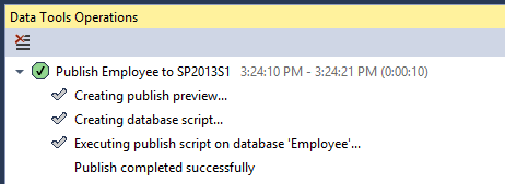 Now, redo the publishing and we can see that the publishing has succeeded this time.