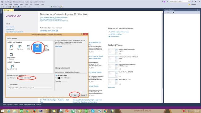 Step 1 - The first step is to create a new project with MVC Web API named as "UploadDocsDummy".