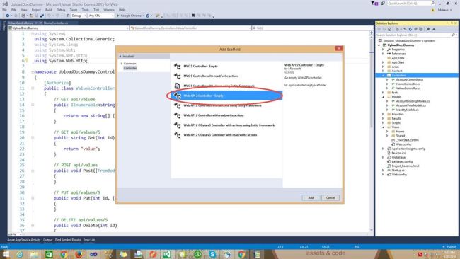 Step 4 - Create a new apiController "DocumentUploadController" inside Controllers folder.