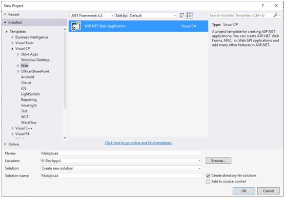 Let us implement these in a sample Application. Open Visual Studio. Go to File->New->Project. Give a suitable name to the Application. Click OK.
