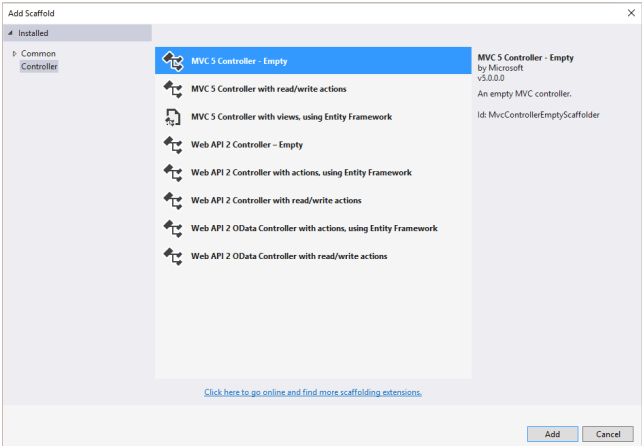 Let us add a controller. Right click on the Controller. Add->Controller.