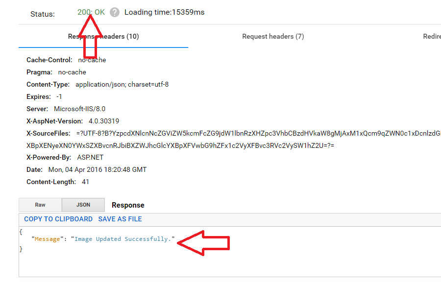The Status 200:OK and the message shows that the image has uploaded, if we want to check it in the following folder it will appear in the folder as in the following.