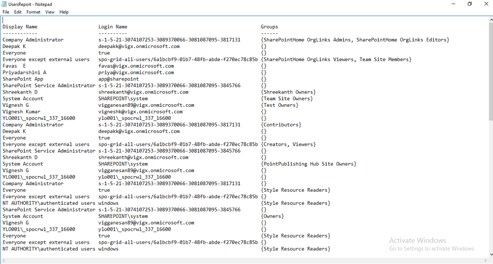 6. To get a report of the all users in your SharePoint Online Tenant, their display names, permission levels and other properties