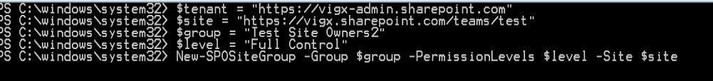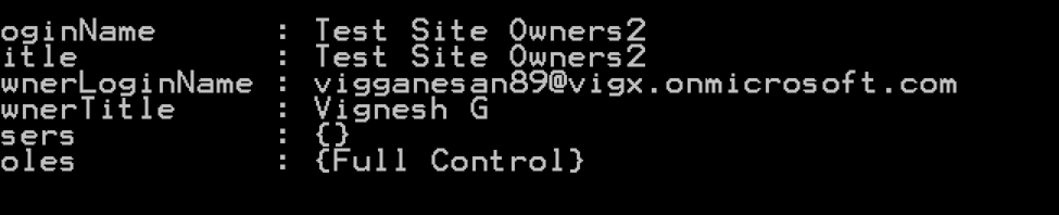 Running the above command will create a new SharePoint Group in the targeted site collection and will give the results, as shown below.