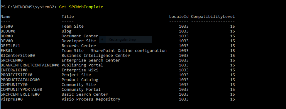 10. To get the list of site templates in your SharePoint Online tenant