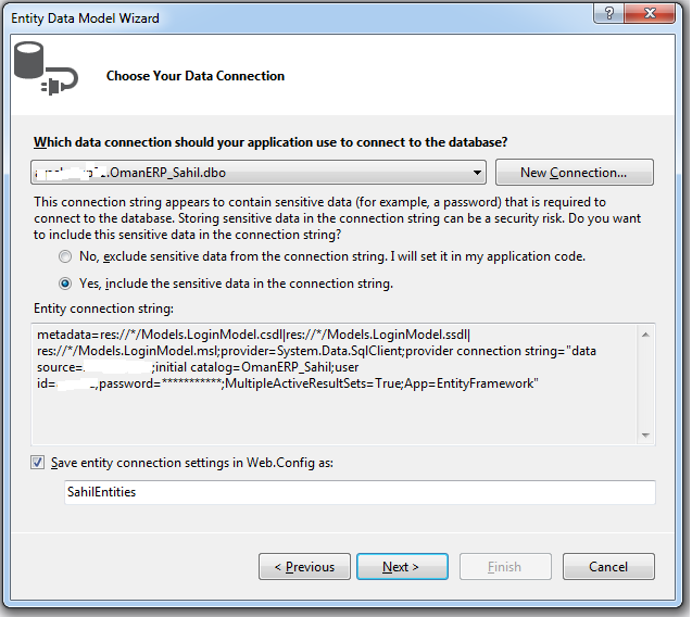 - In the given box type entity name as SahilEntities and After that click New connection.