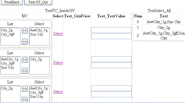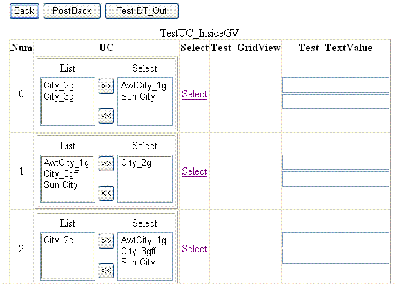 Now we can test how our control works inside the GridView control. Choose some values in every control (column "UC") :