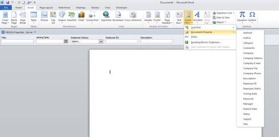 Quite often, there is a situation when a user wants to save the documents with metadata in SharePoint library. To accomplish this, we can use document template, customize it, and by using Quick parts in Microsoft Office, we can save the metadata in the library and in Microsoft Office documents.