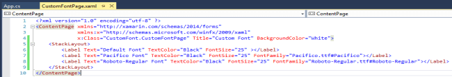 - <Label Text="Default Font" TextColor="Black" FontSize="25" ></Label>