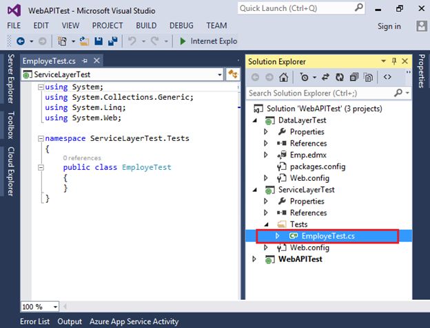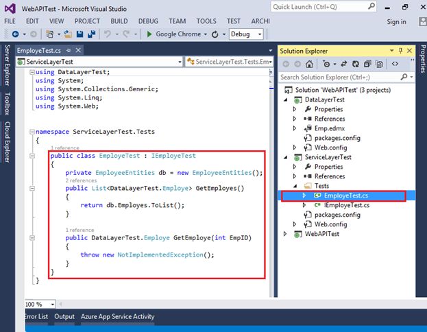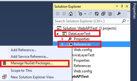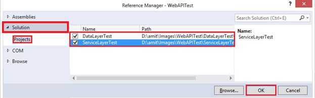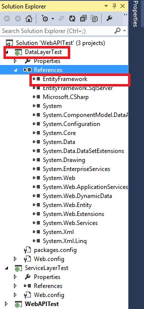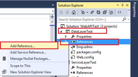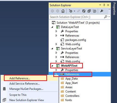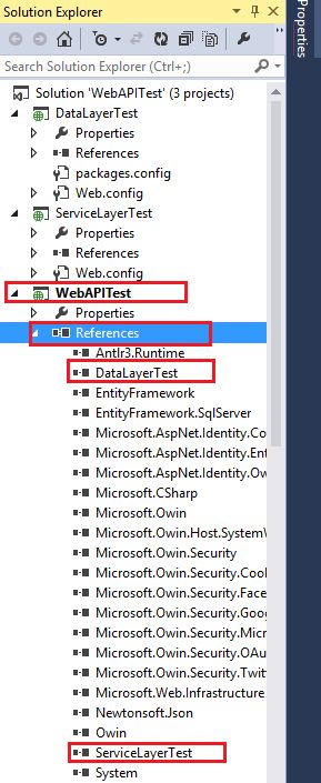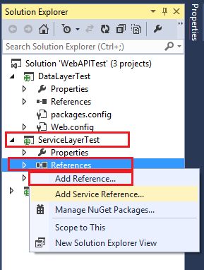 As you can see, DataLayerTest and ServiceLayerTest reference have been added successfully into our WebAPITest project.