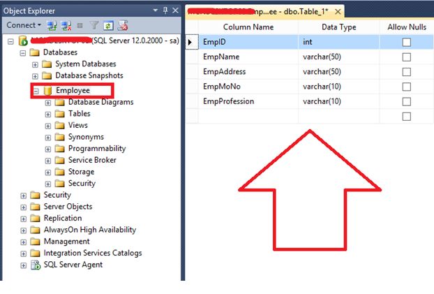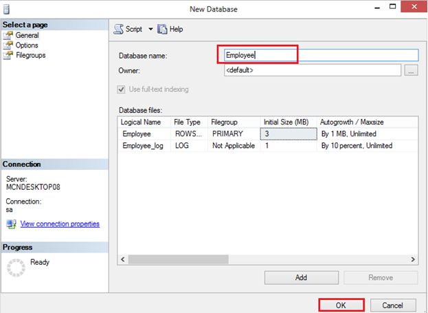 Give a name to your database. I have given it a name; Employee, click the OK button to create it.