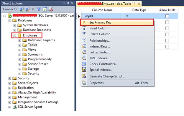Set Employee ID as a primary key, right click EmpId and select set the primary key option.