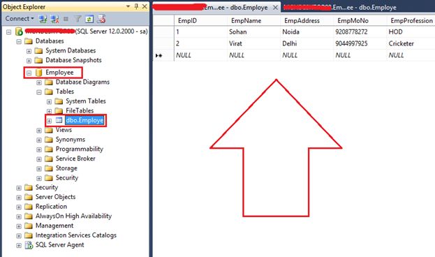 You must fill some details in the table which we can use in our Service layer to show the data, as we expected in the end on the Browser. We can call the methods in our project with these details.