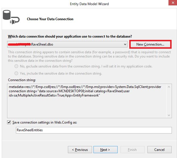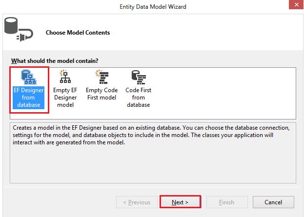In the Data panel, choose ADO.NET Entity Data Model and give a name to it.