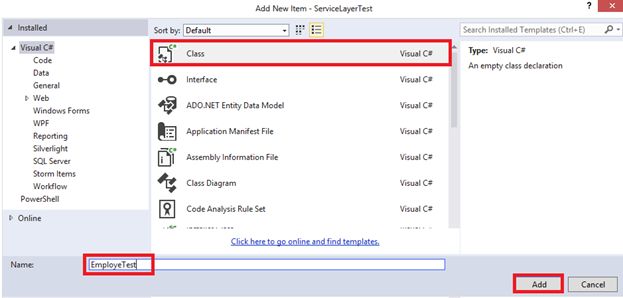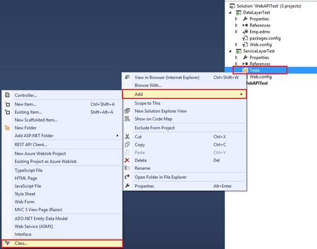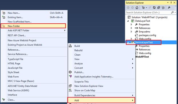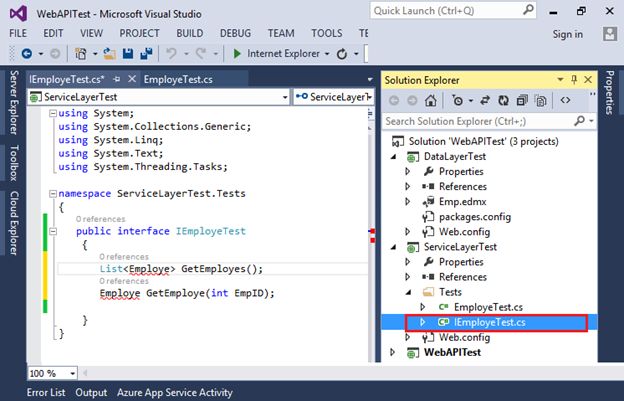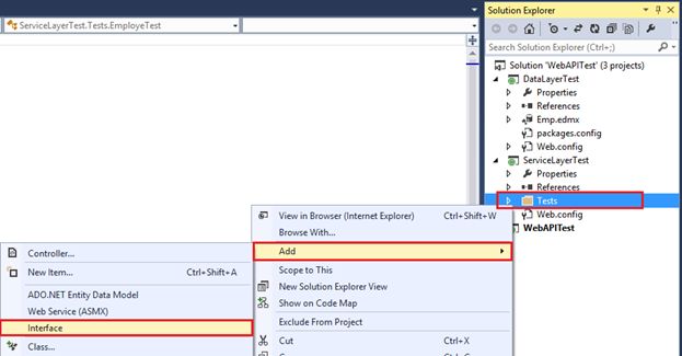 Add a folder in ServiceLayerTest project. In this folder, we’ll create a class and an interface.
