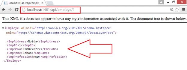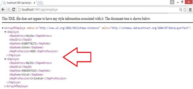 Now, debug and run your project by clicking F5. Call your controller in the Browser Window’s URL. Hence, we successfully got our ID result as XML representation of my data.