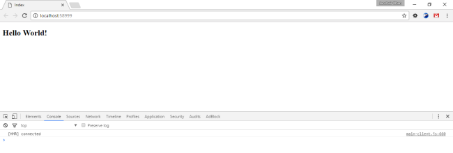 This means that your HMR up and running. Now, try to modify the TypeScript file and hit "Save". You will see that the changes in the browser reflected immediately without reloading the page.