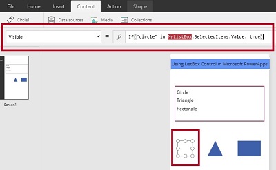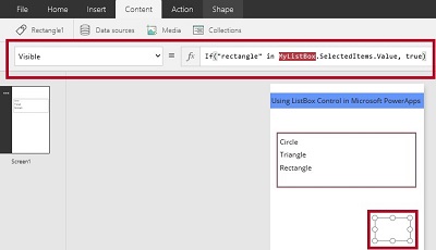 If("rectangle" in MyListBox.SelectedItems.Value, true)