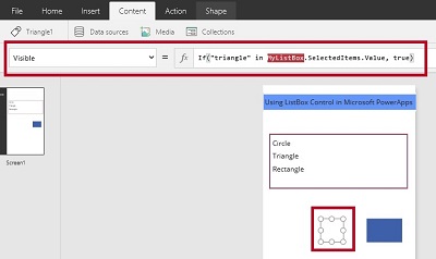 If("triangle" in MyListBox.SelectedItems.Value, true)