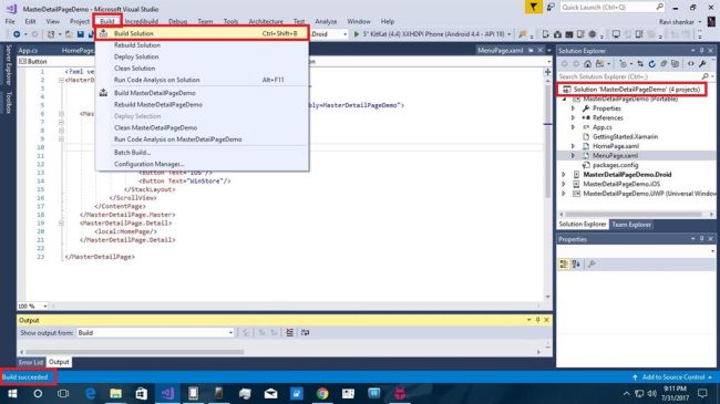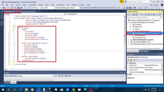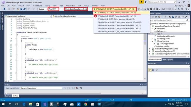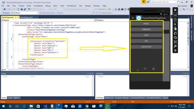 Xamarin is a platform that allows us to create multi-platform mobile applications like Windows phone, Apple iOS, and Android through a single integrated development environment (IDE). We will discuss how to create MasterDetail Page applications from VS2017. There are many plugins available for Xamarin Cross platform including Stack Layout, Label,ScrollView and buttons.