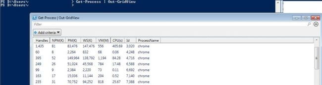 Get-Process | select ProcessName,CPU or Get-Process | foreach-Object *** etc