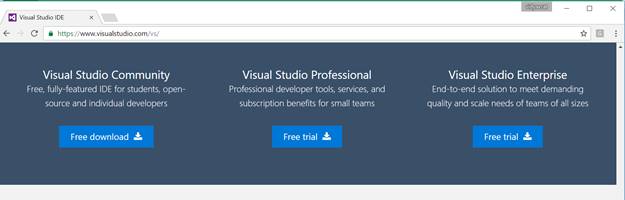 Unlike Visual Studio Community edition which is a free download, Visual Studio 2017 Developer and Enterprise Editions are free trial.