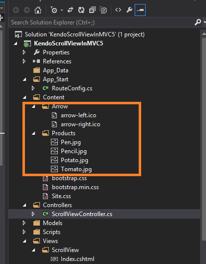 - Select New Project -> Visual C# -> Web -> ASP.NET Web Application and enter your application name. Here, I named it "KendoScrollViewInMVC5".