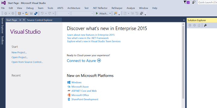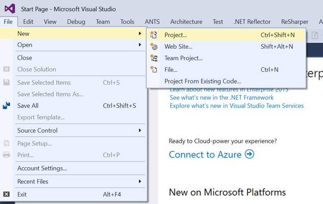 Let’s start from very basic. Open your Visual Studio. I am using Visual Studio 2015 Enterprise edition and would recommend you to use at least Visual Studio 2015 for this article