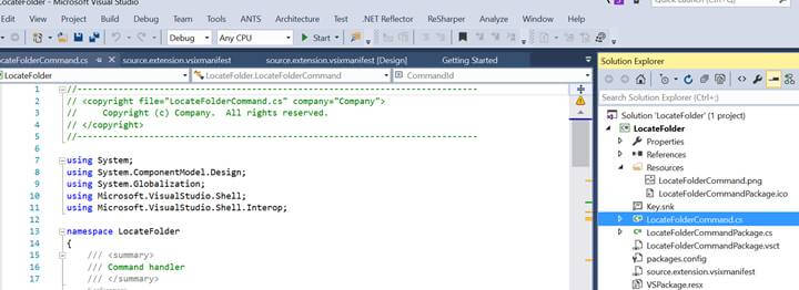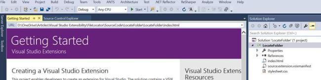 As soon as the new project is created, a “Getting Started” page is displayed with a lot of information and updates on Visual Studio extensibility. These are links to MSDN and useful resources that you can explore to learn more and almost everything about extensibility.