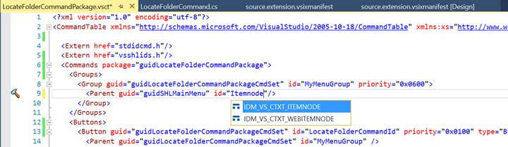 In that case, the LocateFolderCommandPackage.vsct file would look like this.