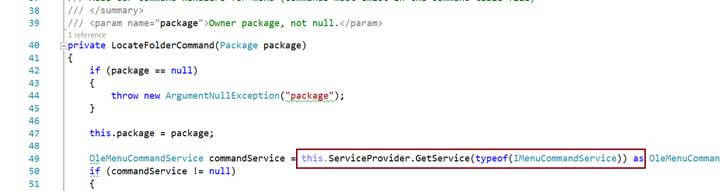 Each of the files has its own significance here. We’ll cover all these details. When we open the LocateFolderCommandPackage.vsct file, we again see an XML file.