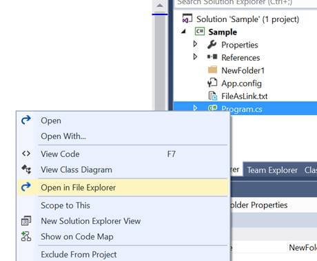 Now, we can create our own VSIX package inside Visual Studio. We’ll go step by step, therefore capturing every minor step and taking that into account. As I mentioned earlier, we’ll try to create an extension that allows us to open the selected Visual Studio file in Windows Explorer, something like shown in below image.
