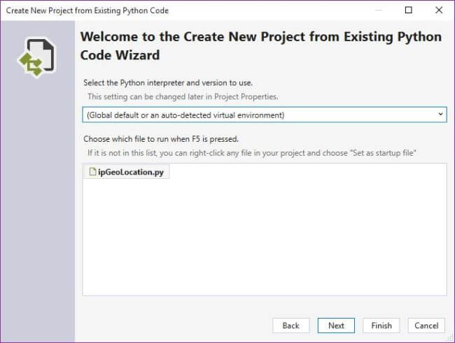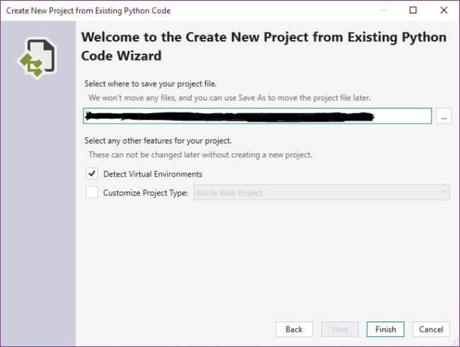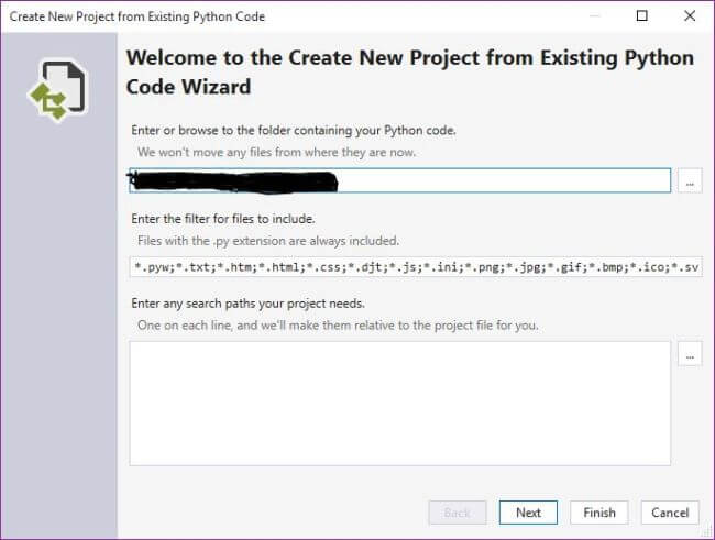 A new screen will open on "Create New Project from Existing Python Code", choose the folder, where your current Python code resides and click next, as shown below.