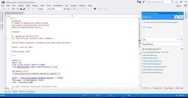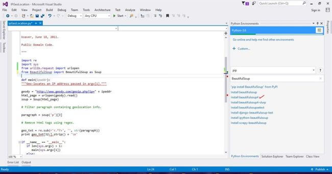 In the image given above, Visual Studio will highlight that "BeautifulSoup" package is missing. Thus, we need to install that missing package.