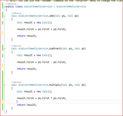We have implemented the IClass and now our Service can add the two numbers, subtract the two numbers and multiply the two numbers. We have specified the Data Contract that our Service is exposing. We have also specified the Service contract and the operations of this Service.