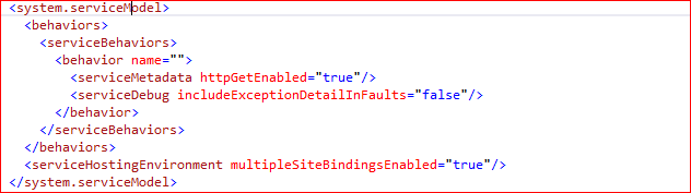 Now, as our Service is ready with the interface and its implementation, we will now configure other things. We have to make this Service visible to our client and let the client Application use this service. We will add the Service behavior in web.config.
