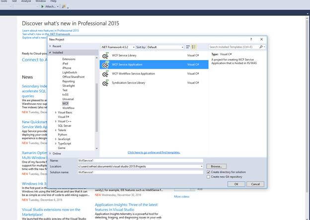 Give some name (For my example, let’s take default name i.e., WcfService) and press OK button.