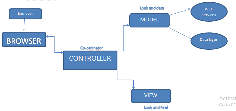 What is MVC? Why use MVC? It's a very vast topic to explain. I will explain what MVC is. It’s just a three layer architecture where M stands for MODEL, V stands for VIEW, and the most important part in this architecture is CONTROLLER, like a Hero of any film. Thus, every layer in MVC is assigned with a unique responsibility. So, the View is for the look and feel as well as for positioning what the end user will actually see. The model supplies the data and business logic. So, the models are nothing but just a class, like employee, student etc. and a model can interact with the data access layer, some kind of service, like WCF Service or Web Service, which gives the data. The controller is actually the heart of MVC and as I mentioned above, like a film Hero, it deals with both the layers. This is why the controller is also called the coordinator between the Model and View.