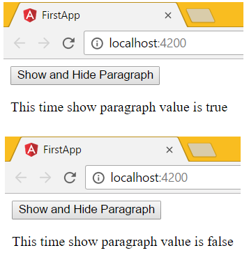 - <button (click)="showPara=!showPara">Show and Hide Paragraph</button>