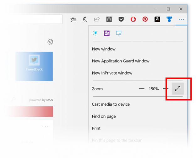 Full screen mode (F11) in Microsoft Edge