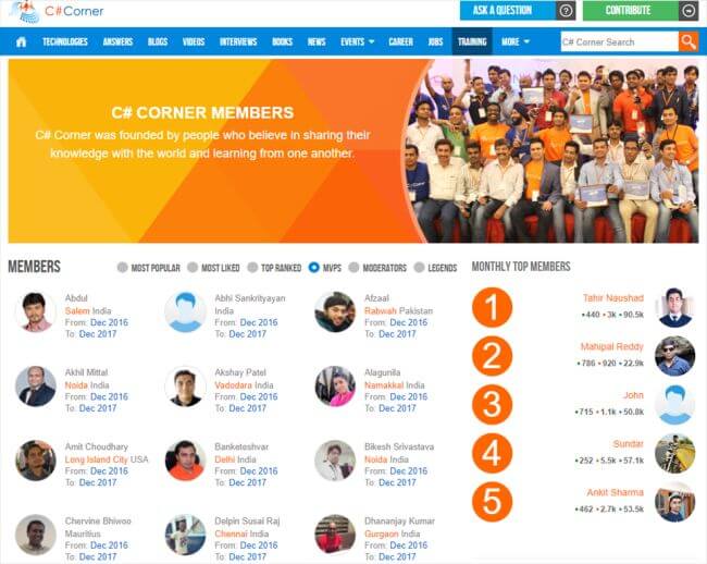 But, not so much later I joined CodeProject because I liked their motives more, as compared to Stack Overflow, and not so long after I came to know about C# Corner from Google. I really liked the community, the first impression of the community was,