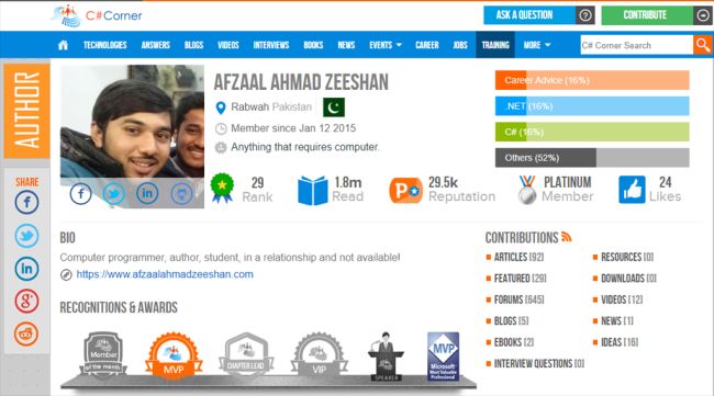 Notice that my profile talks about "Career Advice", what do you think this post is all about? Then, my intentions are mostly related to writing about .NET framework, and sometimes cloud. The profile on C# Corner keeps shifting areas from time to time and if I have been writing a lot about a topic, but longer want to, the profile does not show that.